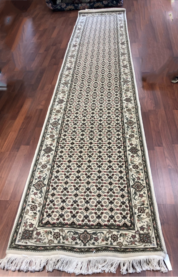 Thin warp threads of cotton can often be found in the elderly carpets, which together with rough pile yarn gives large knots and carpets
